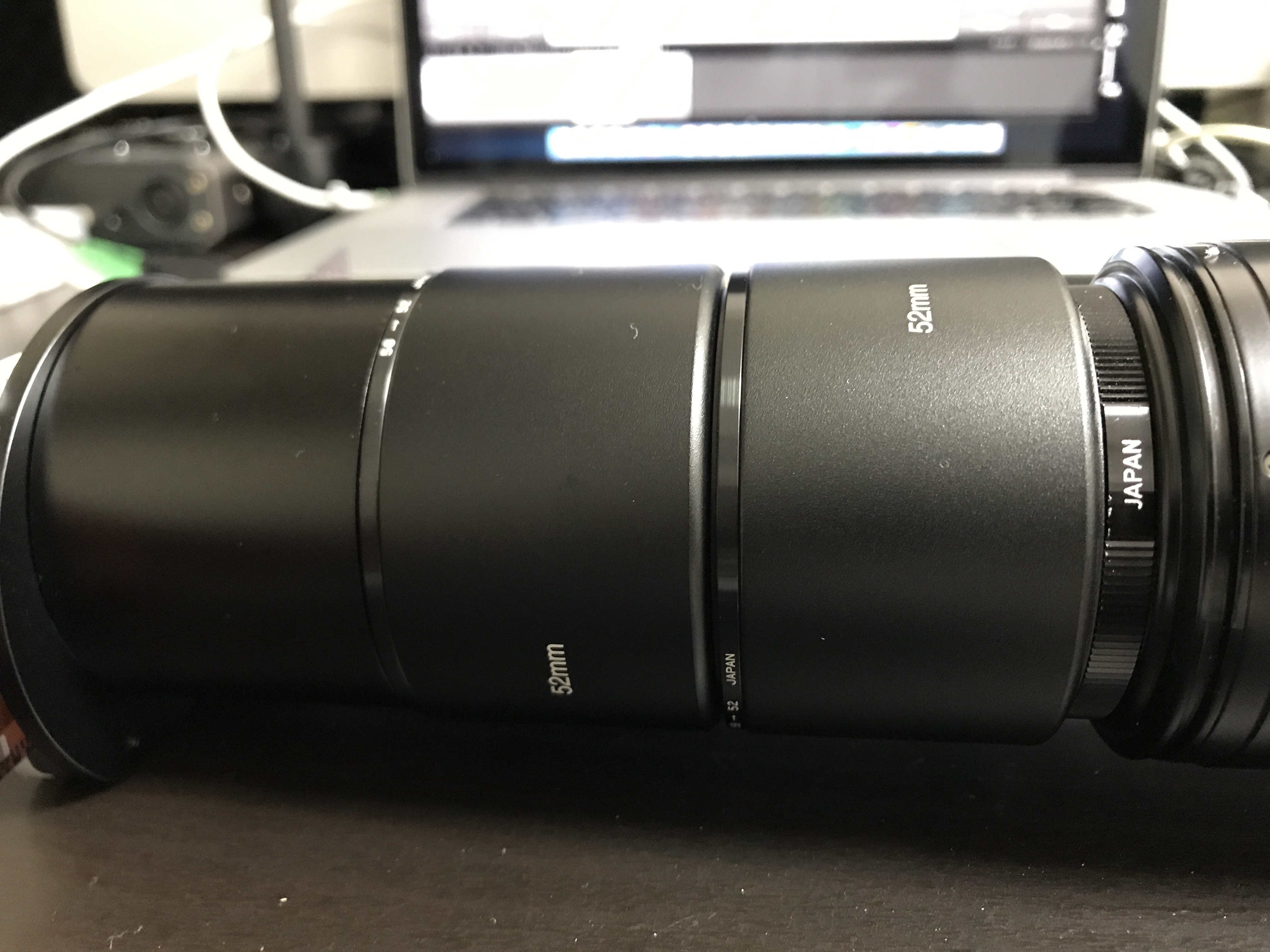 最低焦点距離が7センチ程度足りないようで、色々調べてみると、メタルフードとステップダウンリングを繋げて距離を稼いだ。という記事を見つけ、試してみる事に。